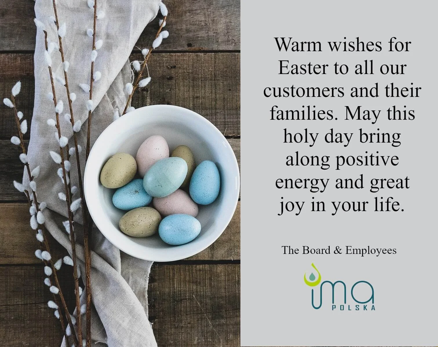 Z okazji Świąt Wielkanocnych życzymy naszym Klientom i Partnerom Biznesowym, aby ten czas przyniósł nadzieję, wiarę, miłość i pojednanie. Niech spotkania z najbliższymi upływają w miłej atmosferze i wiosennym nastroju.